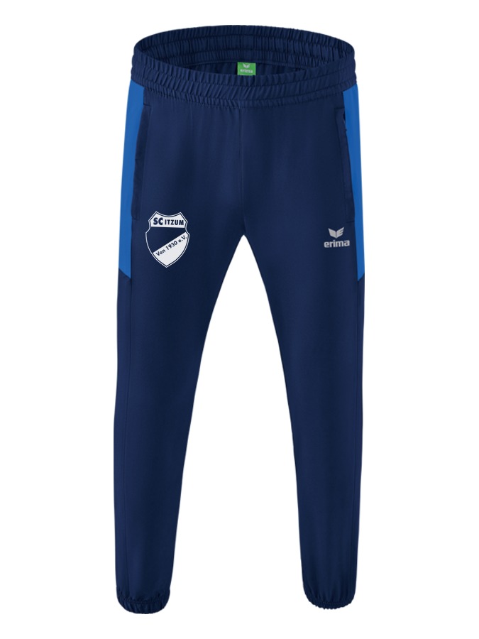 Leichtes, elastisches Funktionsmaterial; Breiter, elastischer Bund mit Kordelzug; Seitliche Reißverschlusstaschen; Elastische Bündchen am Beinabschluss; Beinabschluss mit Reißverschluss